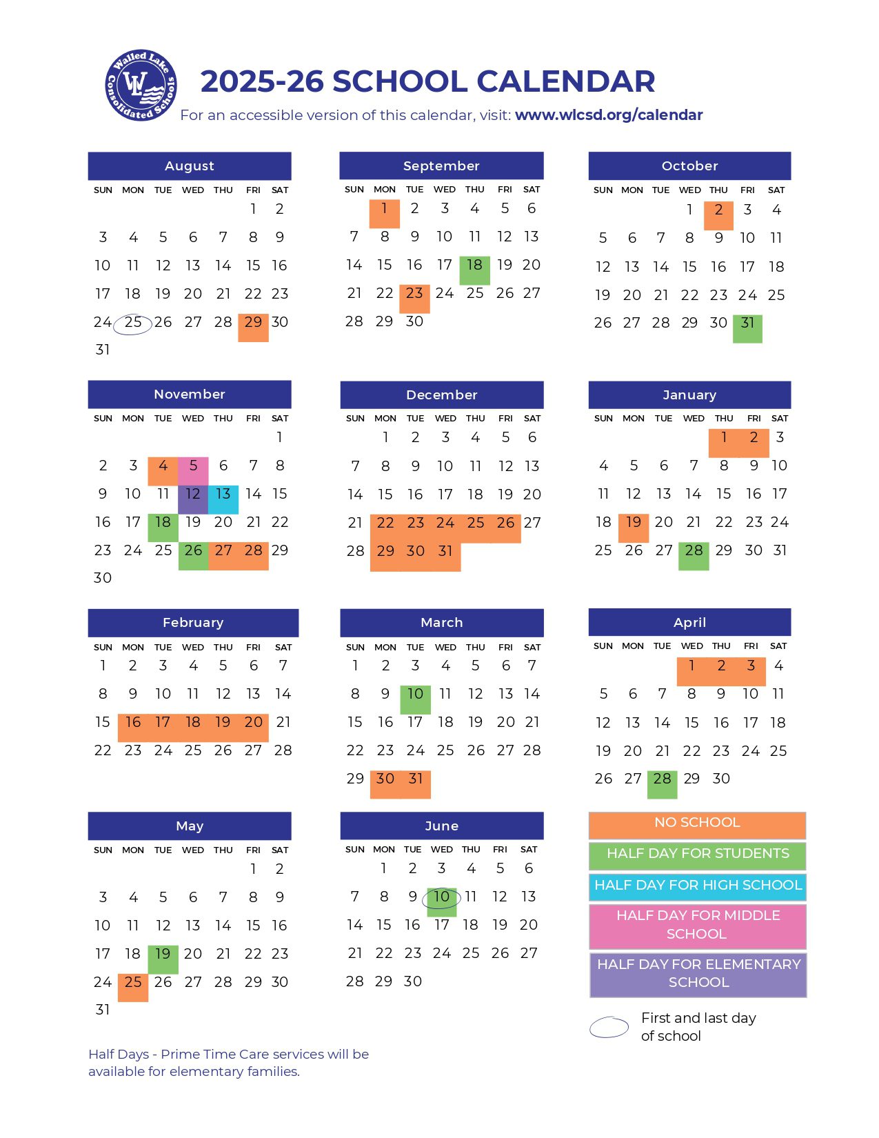 Walled Lake Consolidated Schools Calendar (2025-2026)