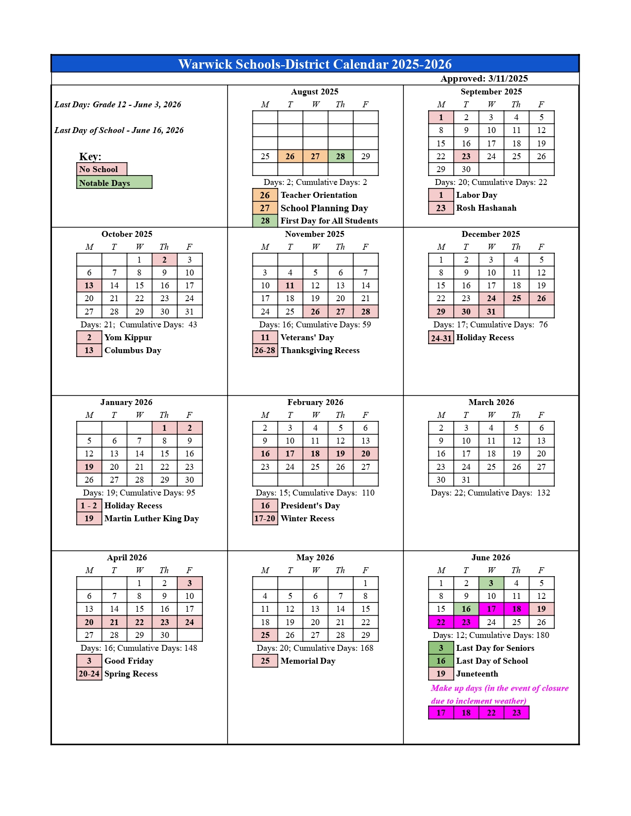 Warwick Public Schools Calendar 2025-2026 FAQ