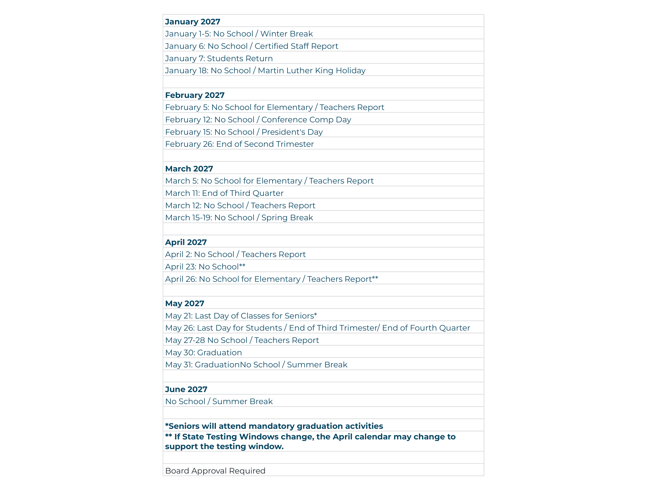 May 31, 2027No School / Summer Break
