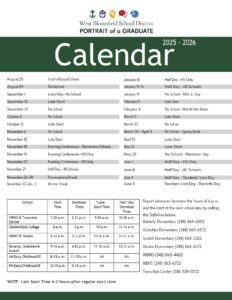 2025-2026 West Bloomfield School District Schools Calendar