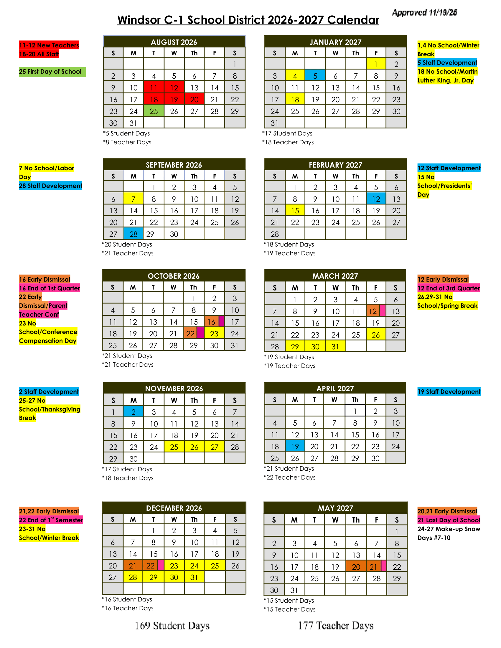 | May 20, 2027 | Early Dismissal |