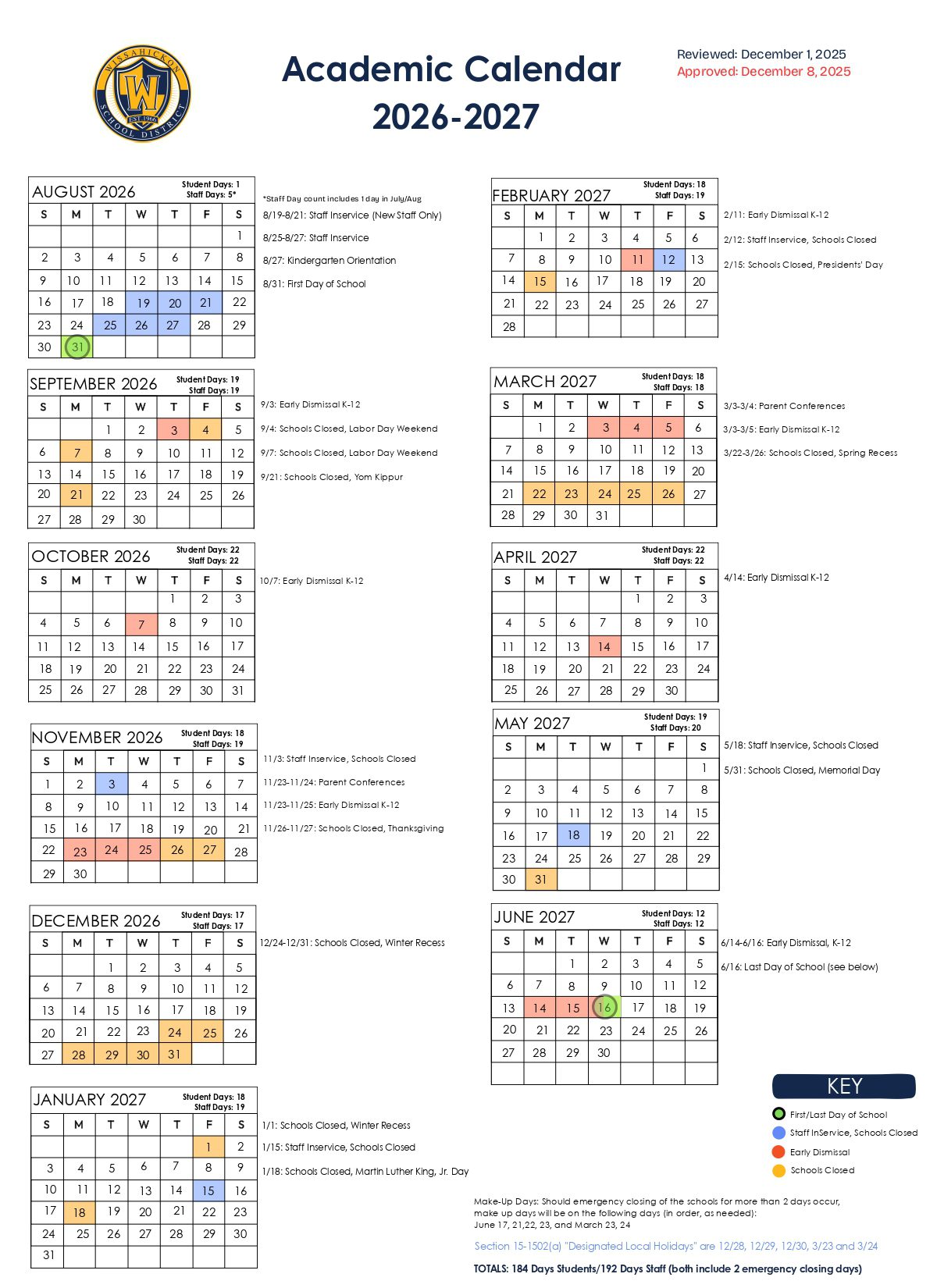 Dates are sourced from the official Wissahickon School District pa Calendar 26-27 Revised PDF website. Dates may change at the discretion of the district. Always verify with the official school website for the latest updates.