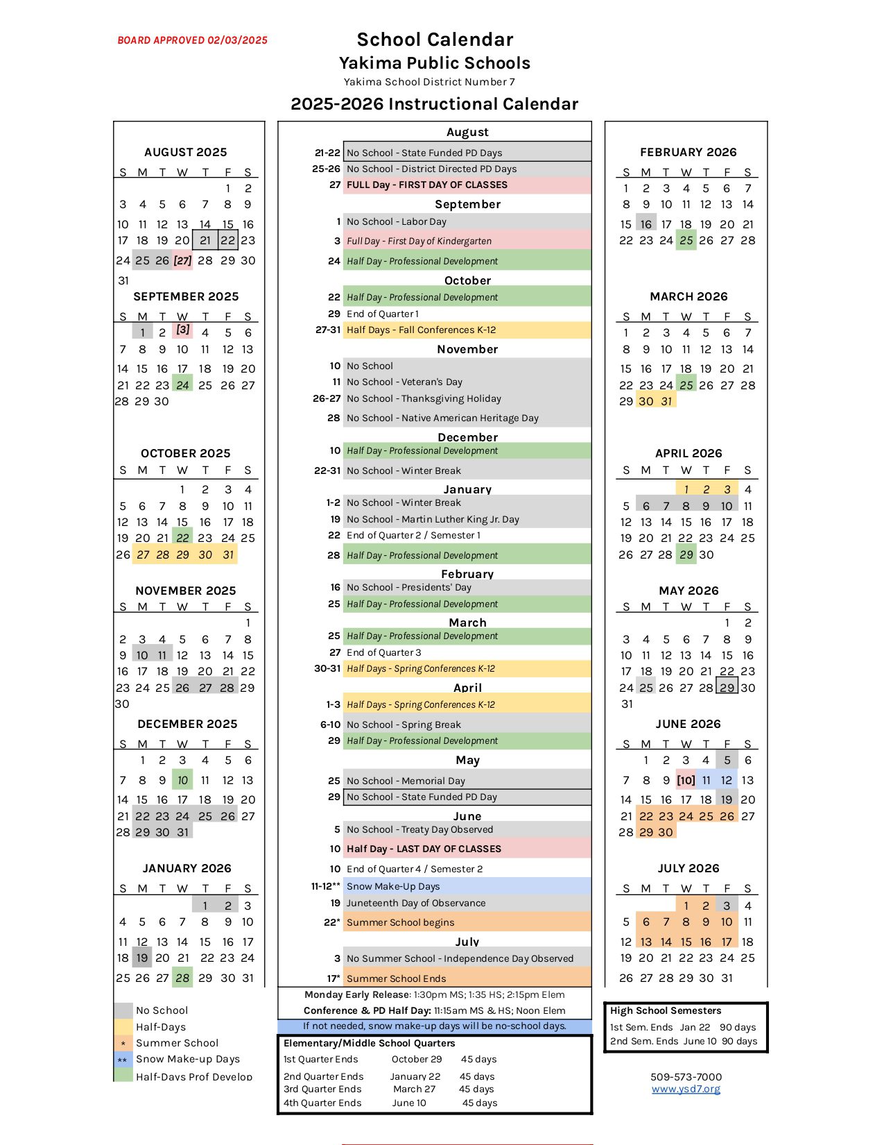 Yakima Public Schools 2025-2026 Calendar FAQ